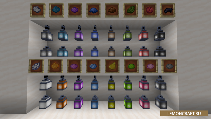 Мод на цветные фонари Lantern Colors добавляет в игру новые фонари имеющие все доступные цвета красителей. Данные фонари предназначены только для оформления декоративной составляющей в вашем мире и не несут никакого полезного функционала.